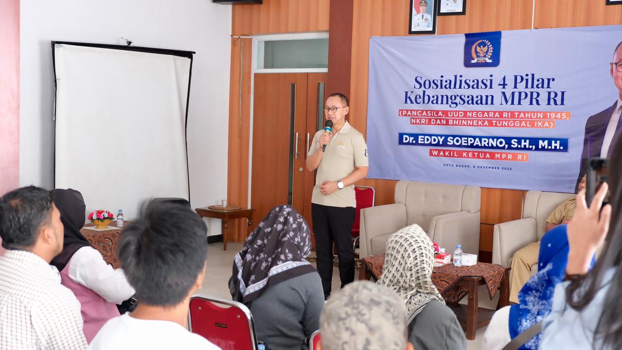 BOGOR – Wakil Ketua MPR RI dari Fraksi PAN H. Eddy Soeparno menggelar kegiatan Sosialisasi Empat Pilar yang di ikuti kurang lebih 150 orang warga kecamatan Bogor Utara. Bertempat di Aula Kecamatan Bogor Utara, Senin (8/12/2025).