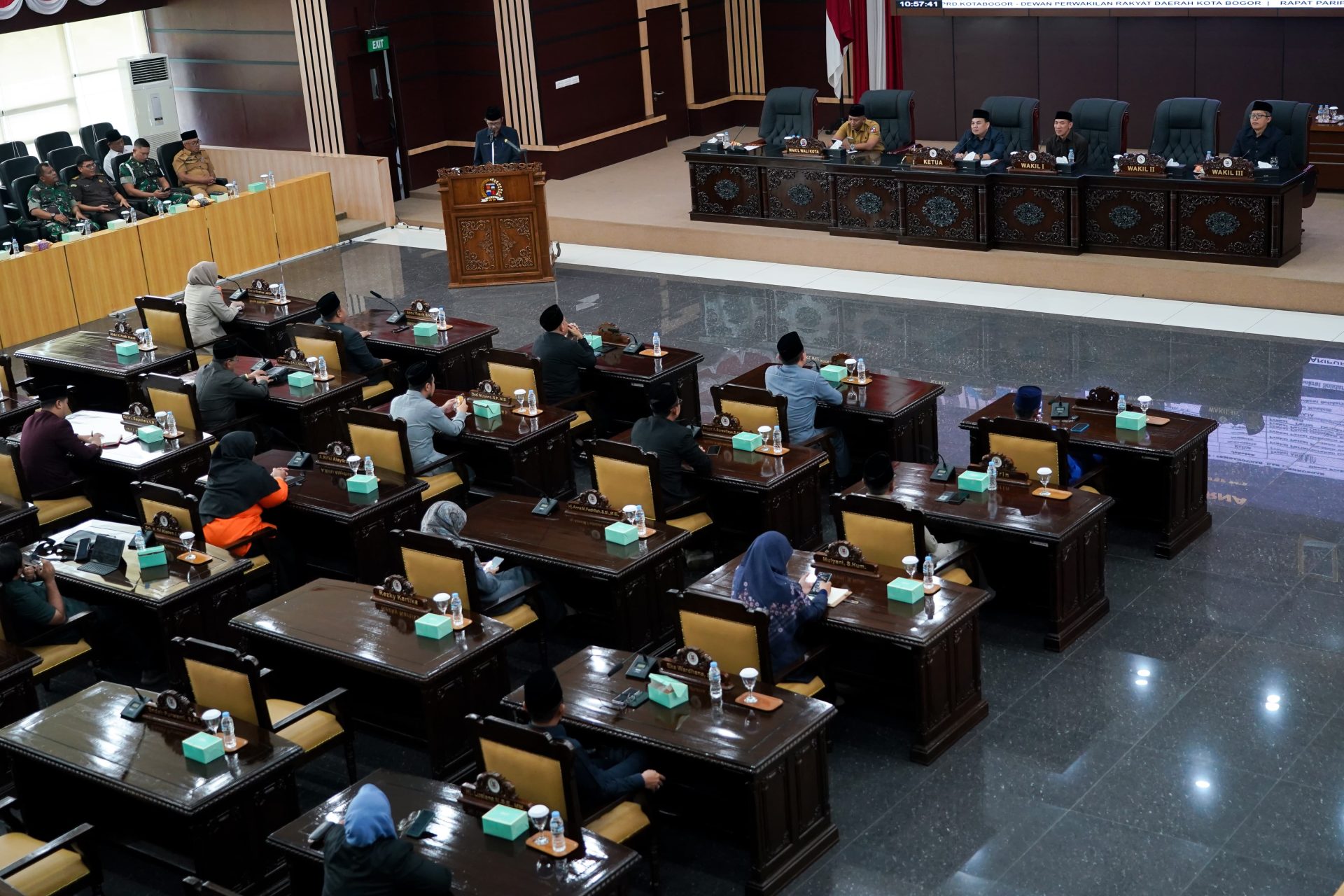Rapat paripurna tersebut dipimpin langsung oleh Ketua DPRD Kota Bogor, Adityawarman Adil, serta dihadiri Wakil Wali Kota Bogor, Jenal Mutaqin.